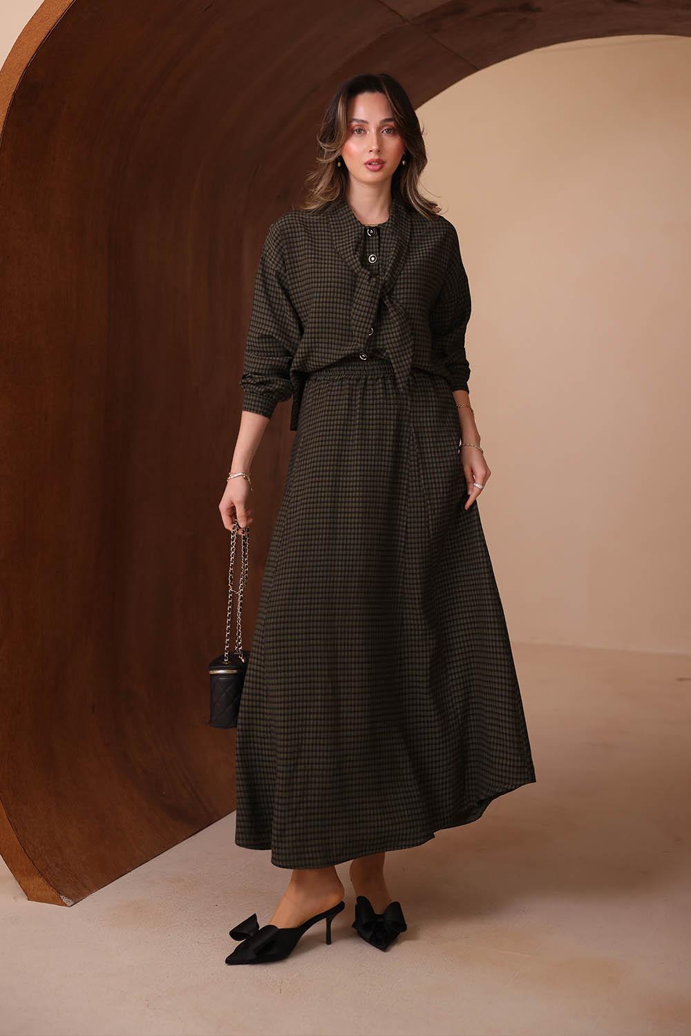 VAYNÈS Milano’nun geleneksel desenleri modern formlarla buluşturduğu Aria Ekose Takım, zamansız bir şıklığın kapılarını aralıyor. Pamuklu poplin kumaşın nefes alan yapısı ve dökümlü etek kesimi, hem günlük hayatta hem de şık davetlerde zahmetsiz bir zarafet sunuyor.